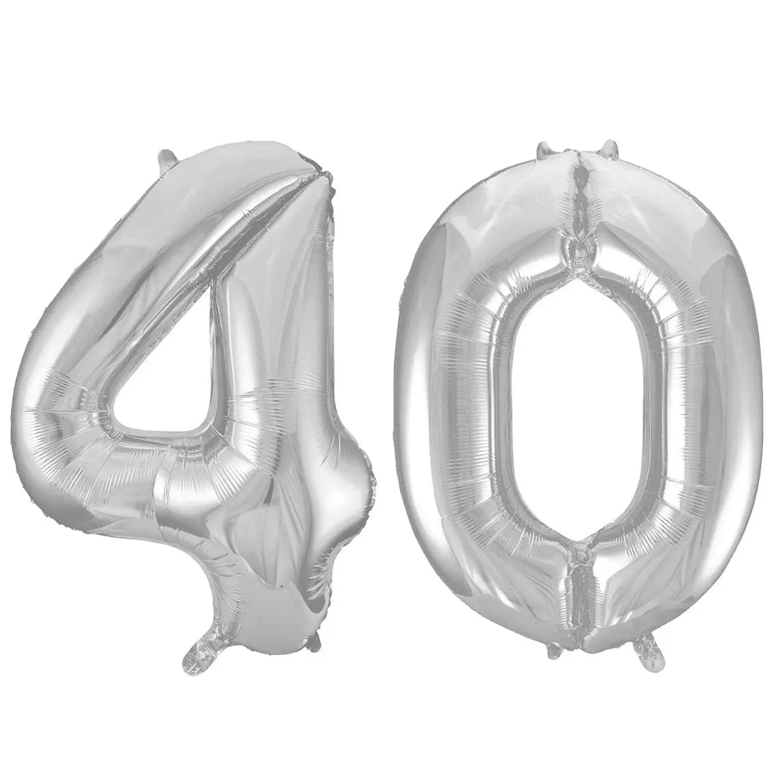 Add this Silver '40' jumbo balloon combo to your party venue for an eye-catching display. Perfect as a centrepiece to your decorations it looks great combined with crepe streamers and latex balloons for an instant room transformation.