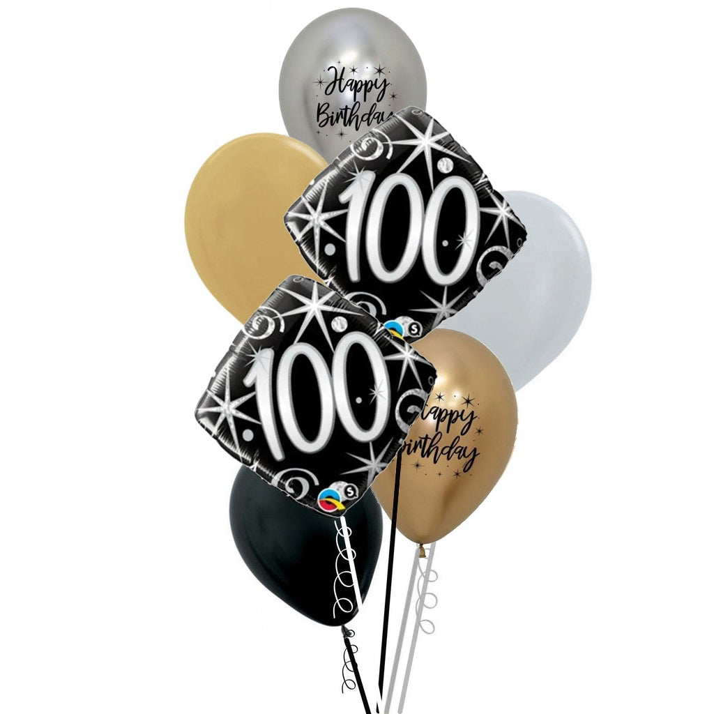 Black, Gold & Silver 100th Birthday Balloon Bouquet