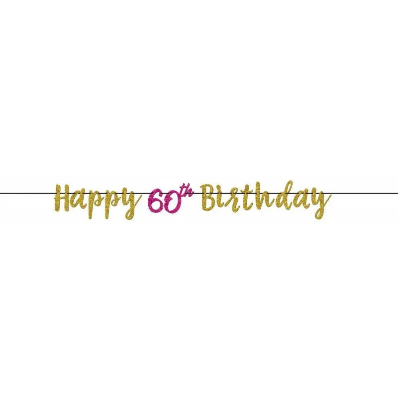 Bring some festivity to a 60th birthday with this sparkly gold and pink banner.
