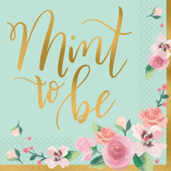 These mint to be beverage napkins are the perfect size for accompanying drinks and nibbles at your bridal shower or engagment party.