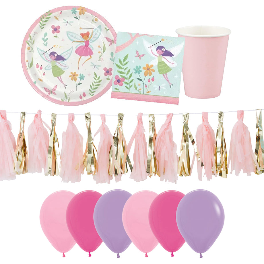 Create a magical fairy party with this beautiful essentials pack containing all the important tableware and decorations you need!