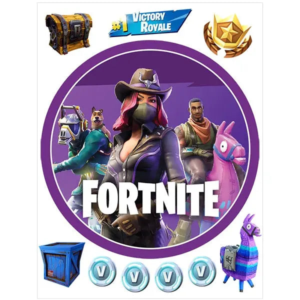 Cake images make cake decoration quick and easy without compromising on quality. Perfect for matching just about any party theme you can think of. This colourful image is great for a Fortnite cake.