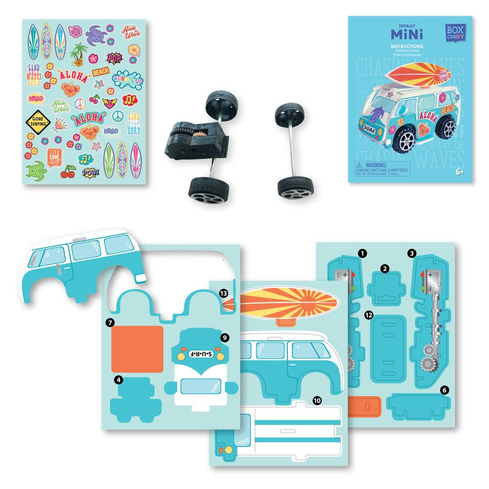 Create your very own mini pull back van with this fun puzzle kit! A great favour for a Hawaiian luau, Moana party, or summer pool party.