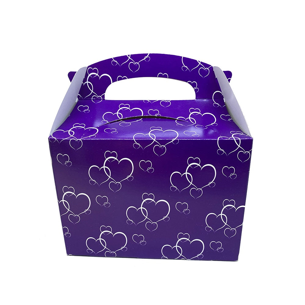 Send guests home with goodies in these pretty purple heart party boxes! A great choice for fairy or princess parties.
