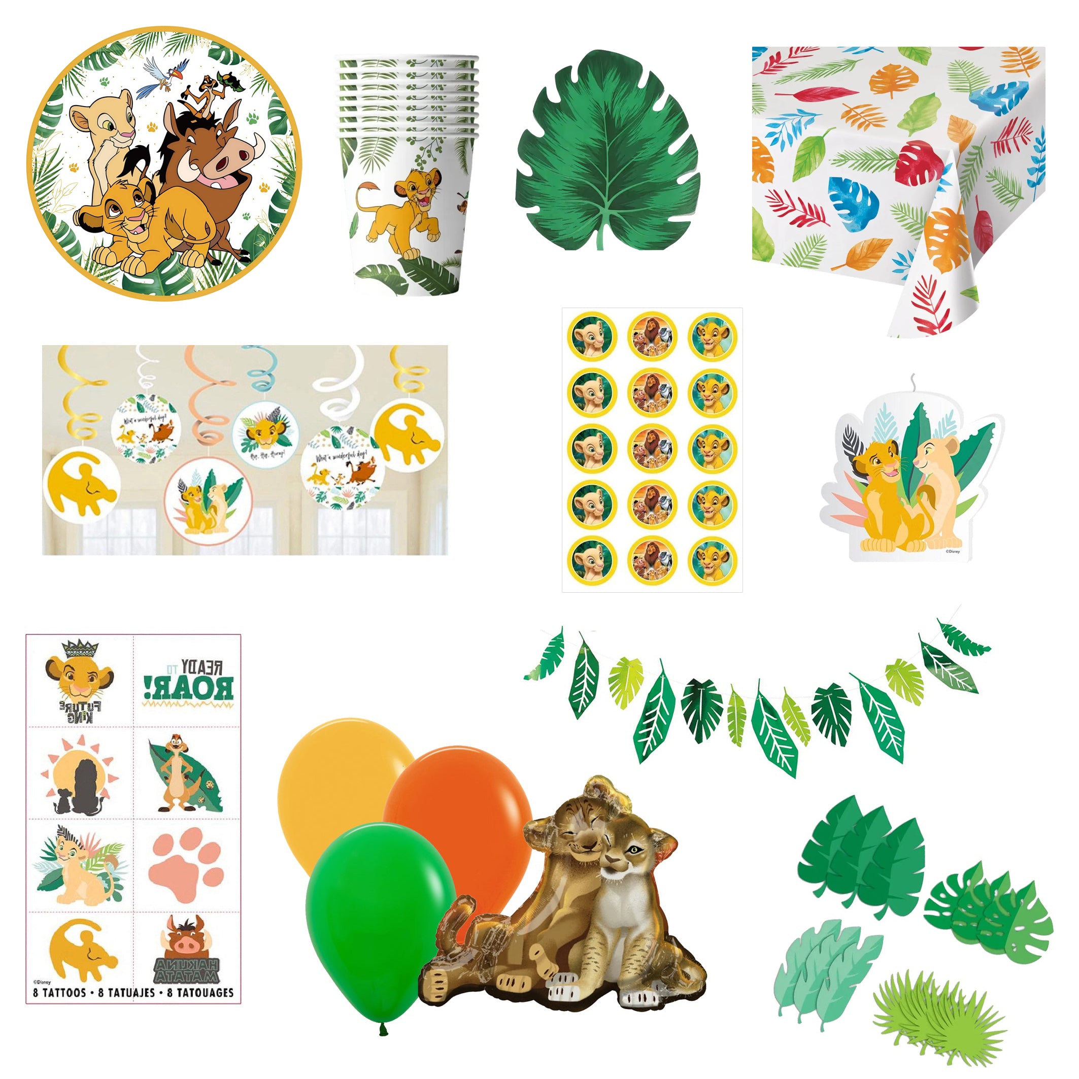 We've got your Lion King party sorted with this awesome pack containing all the tableware, decorations, balloons and cake decorating supplies you need!