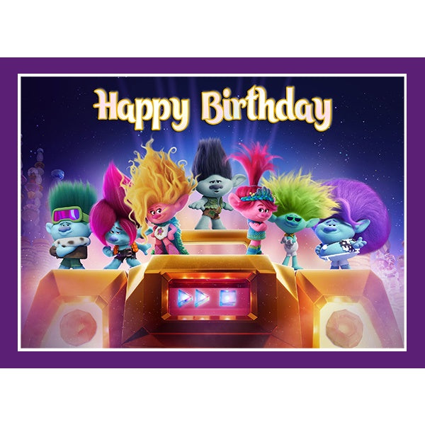 Cake images make cake decoration quick and easy without compromising on quality. Perfect for matching just about any party theme you can think of. This colourful image is great for a Trolls party.