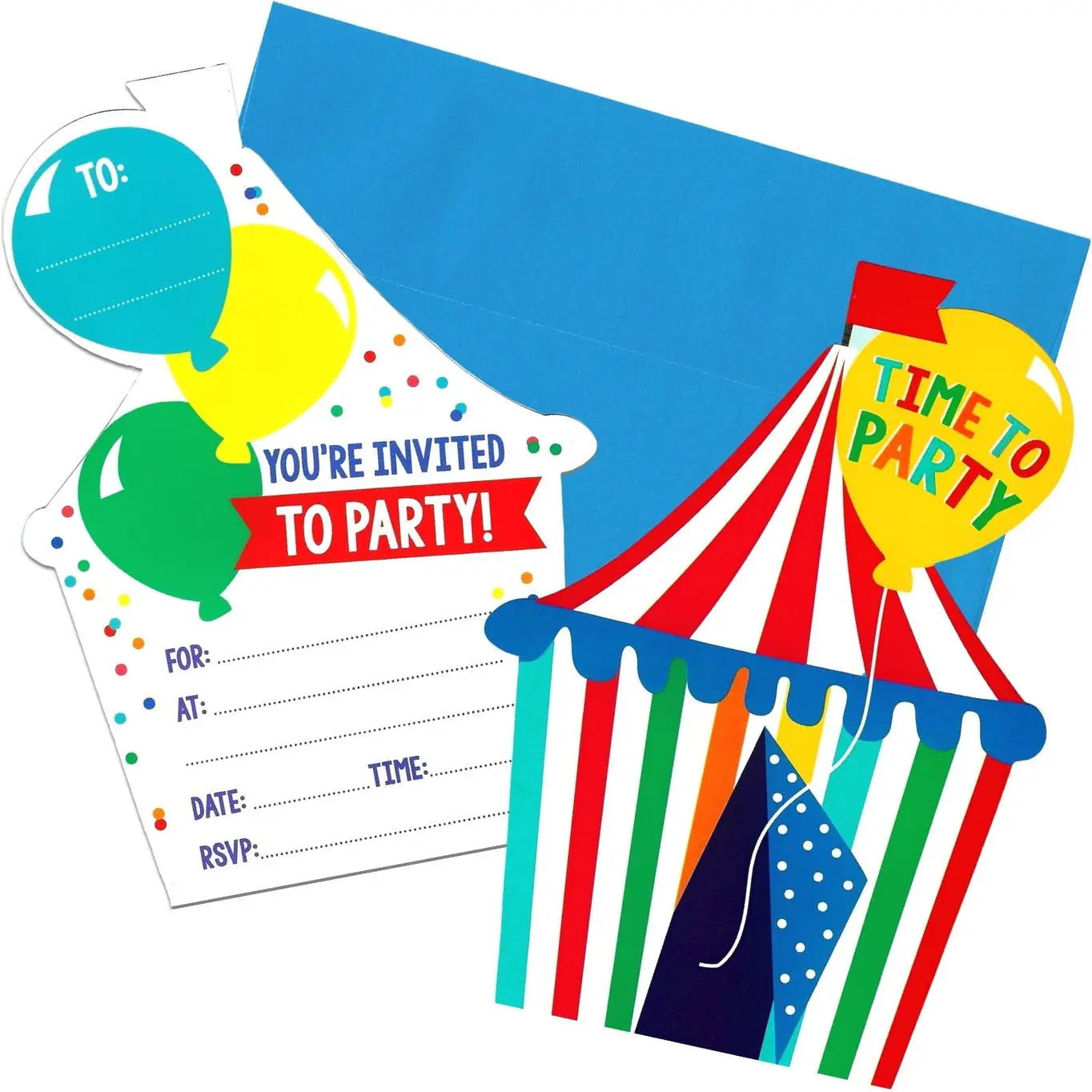 Roll up, roll up! Invite guests to your circus party with these colourful big top tent shaped invitations.
