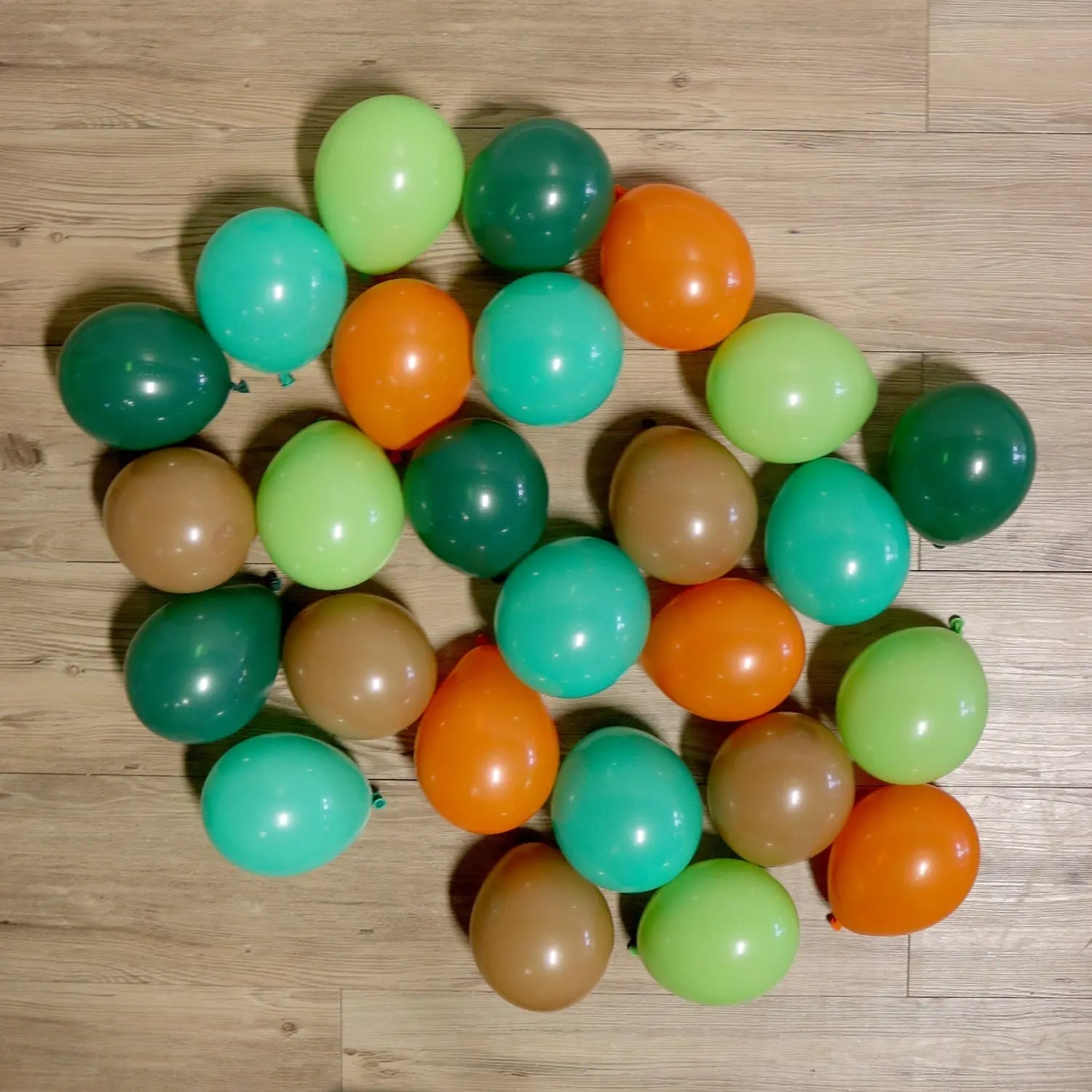 Contains: 60 mini balloons in a mix of green, orange and brown